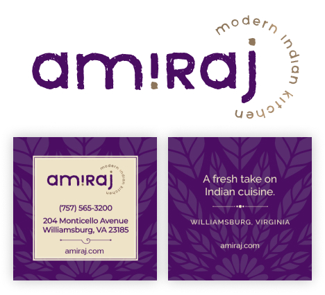 In 2020, amid the uncertainty of the pandemic, Hampton Roads restaurateur Ashok Arora took a bold step. After years of success with his Nawab restaurant group, he launched Amiraj—an entirely new concept that fused inspired Indian cuisine with a sleek, modern dining experience. Our goal was to bring that vision to life through a refined brand identity.